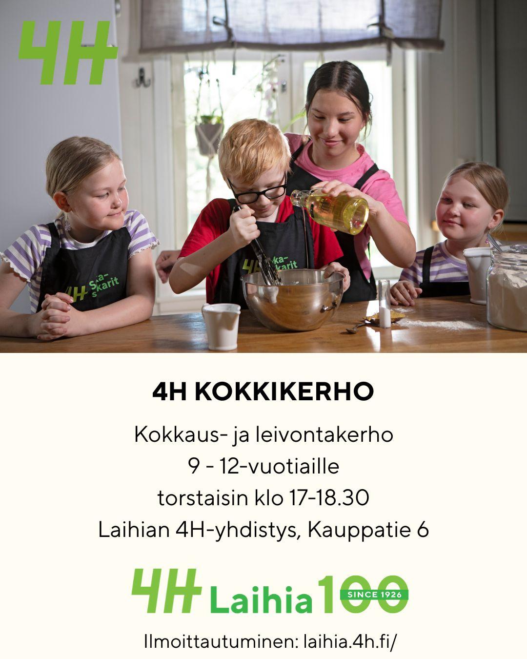 Kerhoon voi liittyä kesken kerhokauden, mikäli ryhmässä on tilaa. Kerhoon saa tulla myös tutustumaan maksutta. Sovithan asiasta ennalta yhdistyksen toiminnanjohtajan kanssa: laihia@4h.fi / 045 159 0065. Tervetuloa!