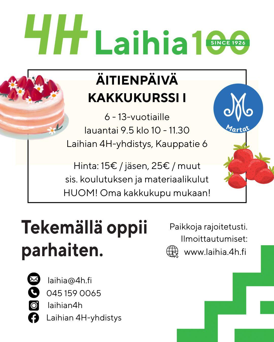 La 9.5.2026 klo 10-11.30, Laihian 4H-yhdistyksen toimisto (Kauppatie 6).